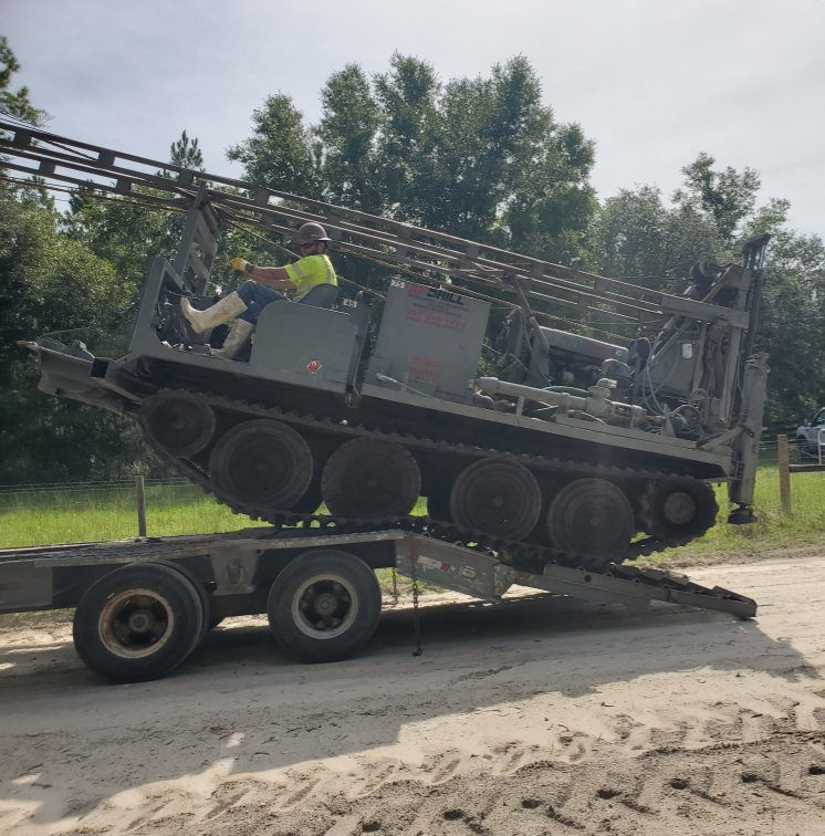 Amdrill has 2 Go-Track Rigs. Our Go-Track Rigs are best suited for off road, thick brush terrain, shallow standing water/wetlands, and does better than our Bug Rigs with soft ground. All Rigs are adaptable for 3″ Shelby Tube Extruder.